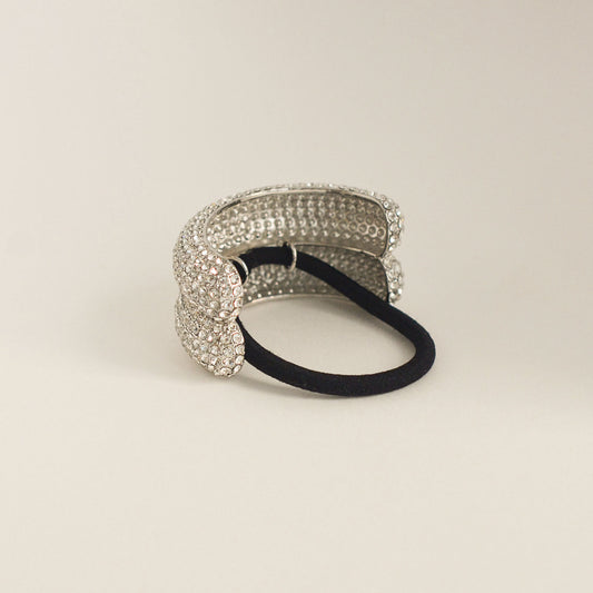 Pave Stone Metal Double Cuff Ponytail Hair Tie | Silver