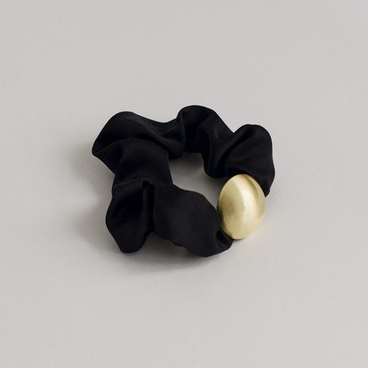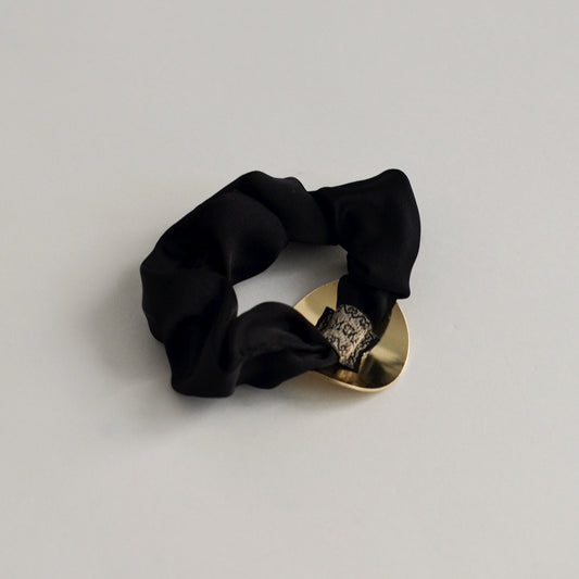 Satin Scrunchie with Hemisphere Gold Charm | Black