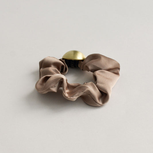 Satin Scrunchie with Hemisphere Gold Charm | Beige