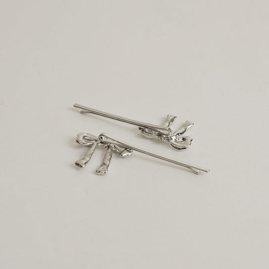 Ribbon Metal Hair Bobby Pins | Silver