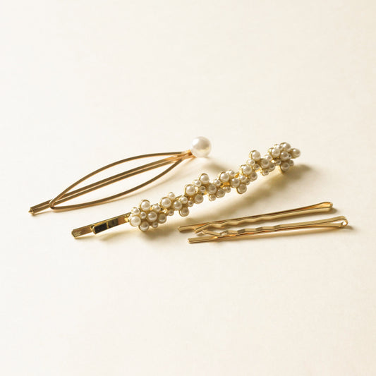 Pearl & Metal Hair Bobby Pins | Set of 4
