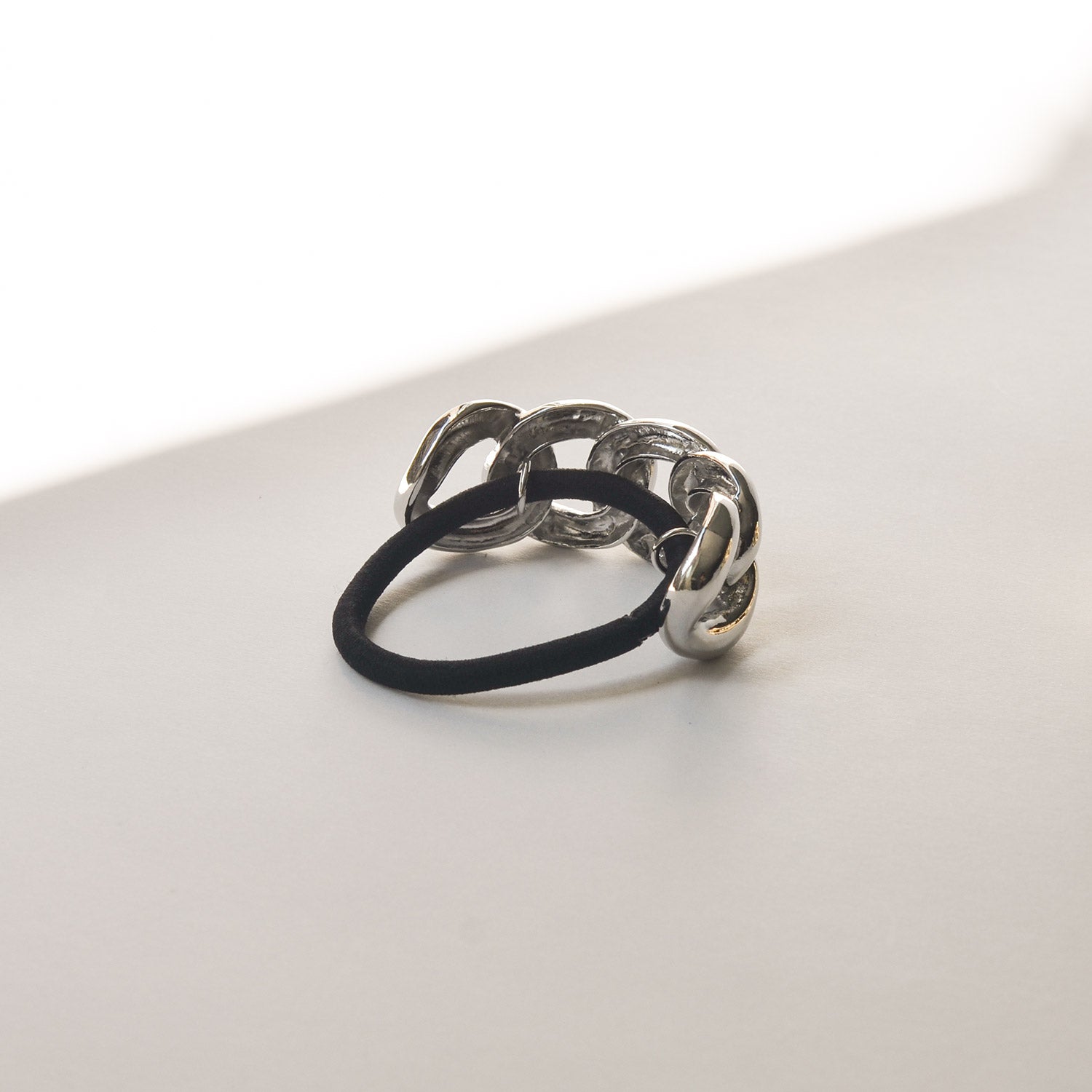 - This hair tie features a sleek chain link pattern for a bold and modern look.