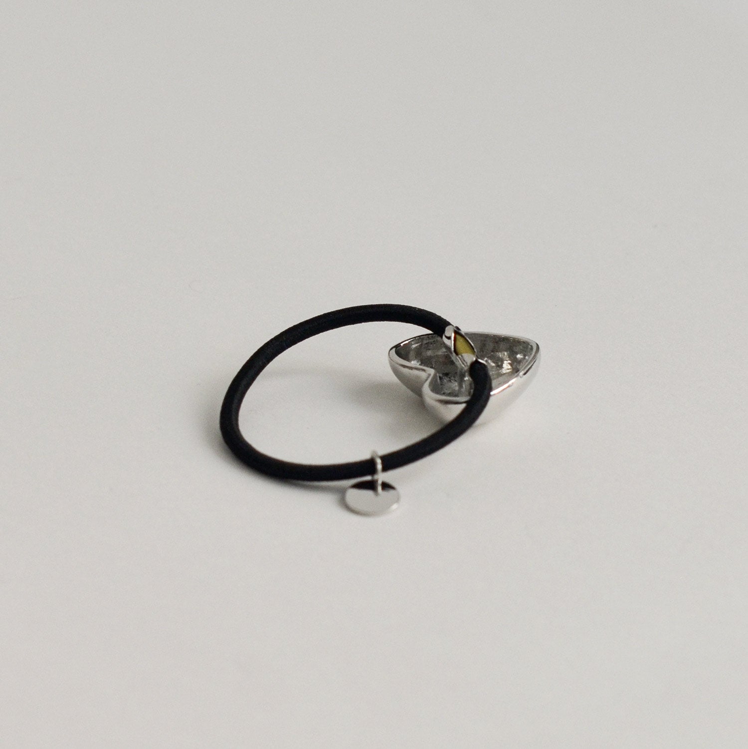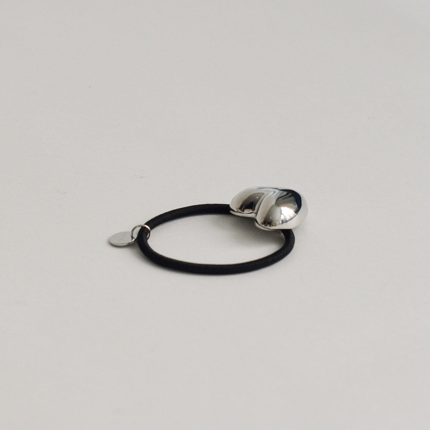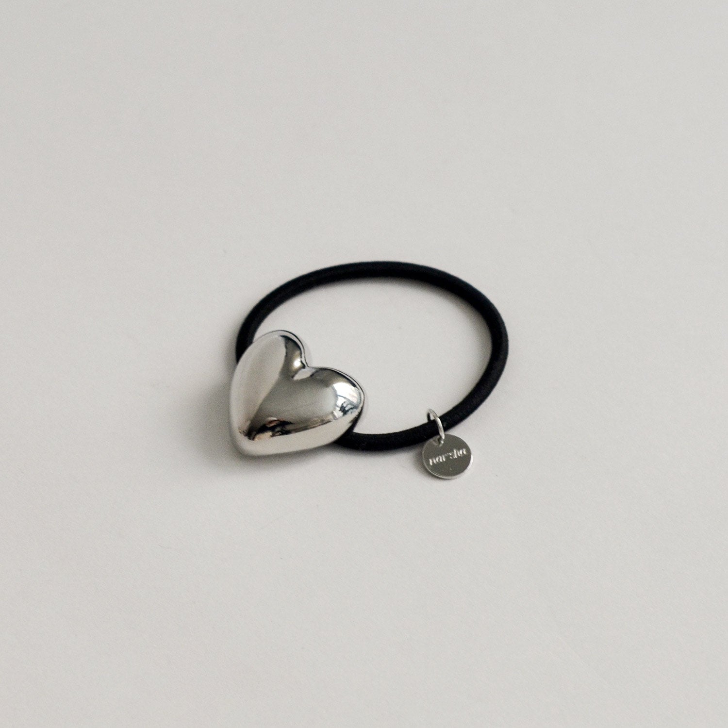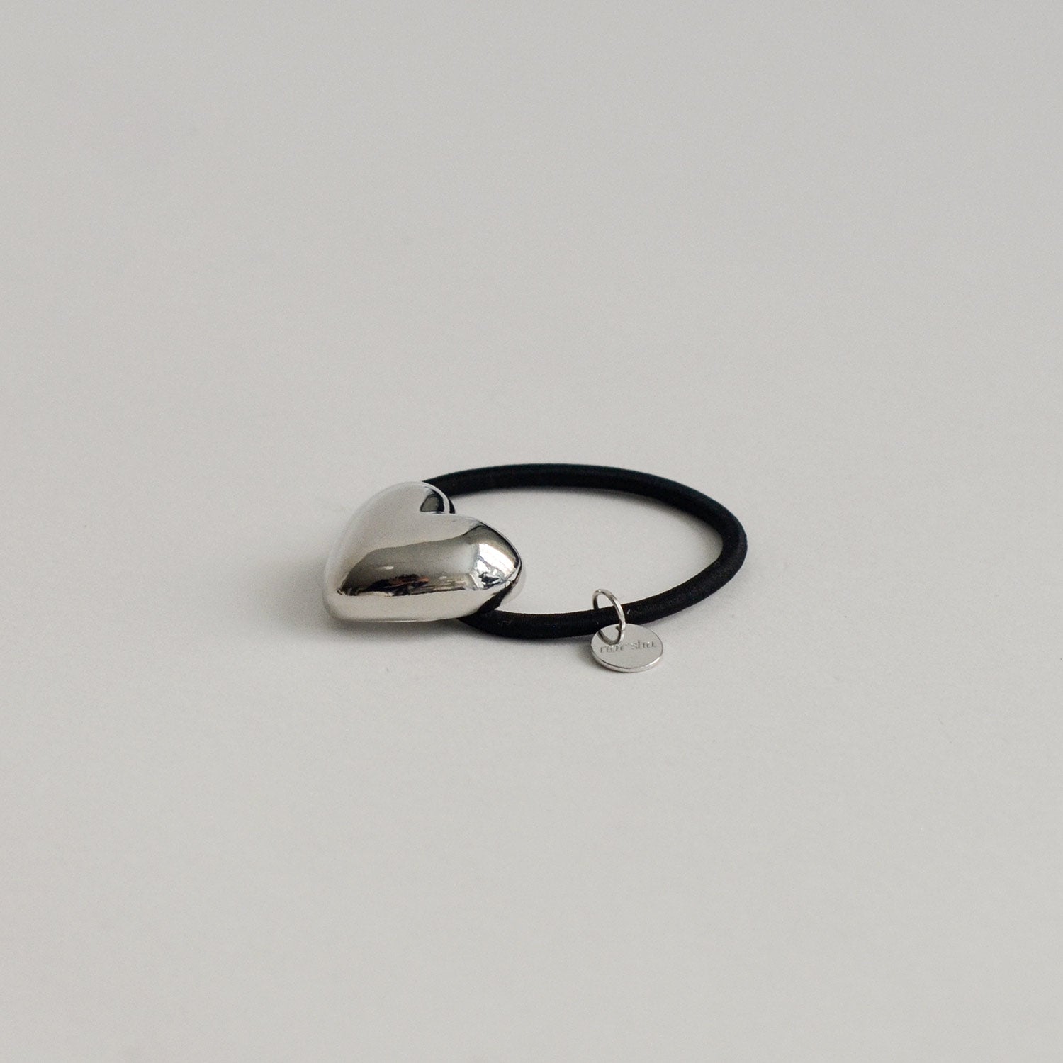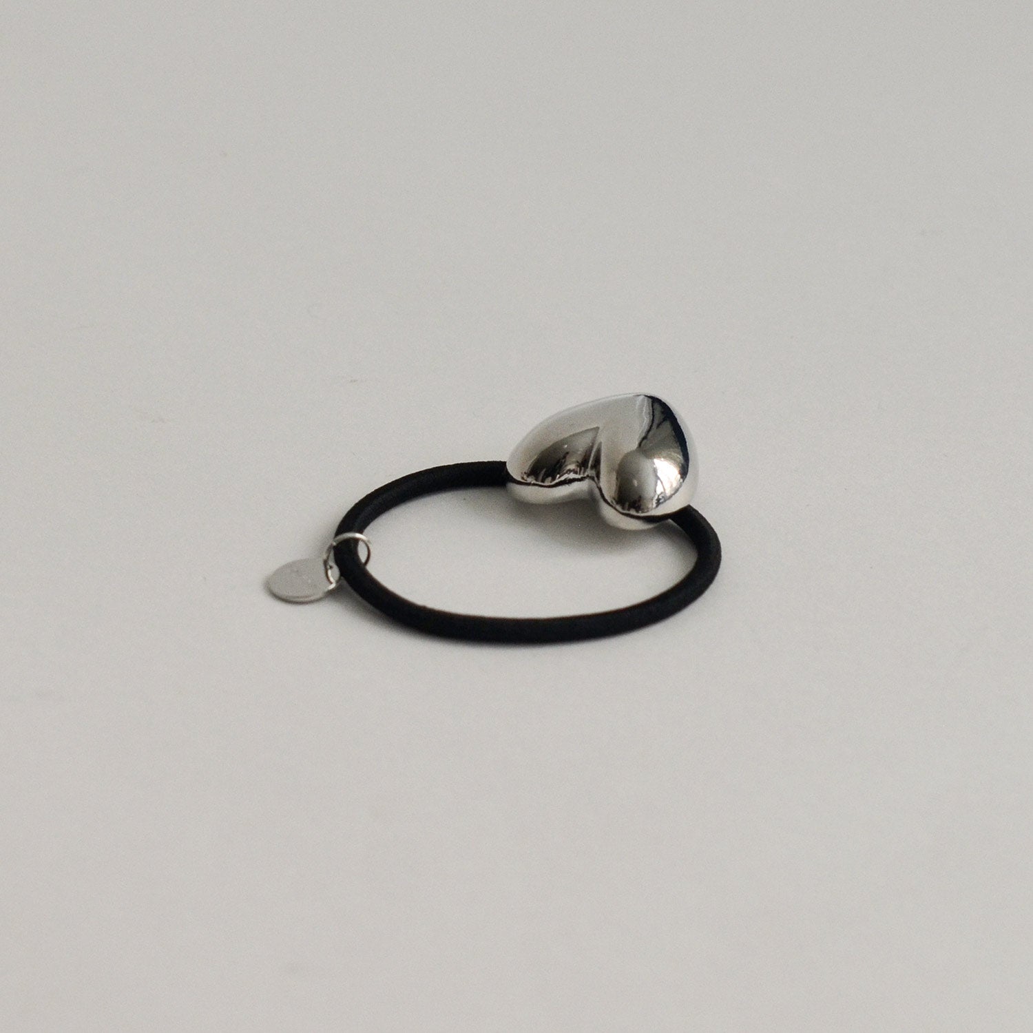 - This hair tie features a heart-shaped metal cuff with a sleek, polished finish and a charming design.