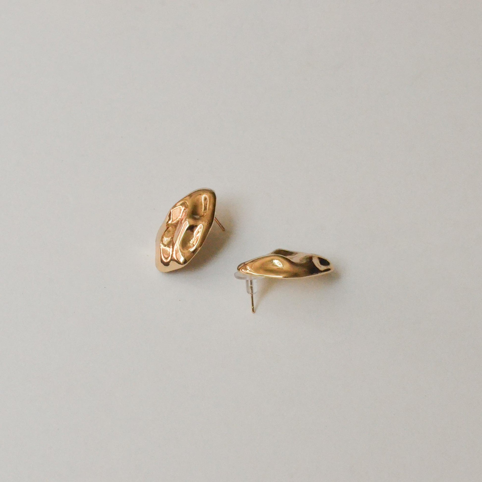 Oval Textured Metal Post Earrings | Gold